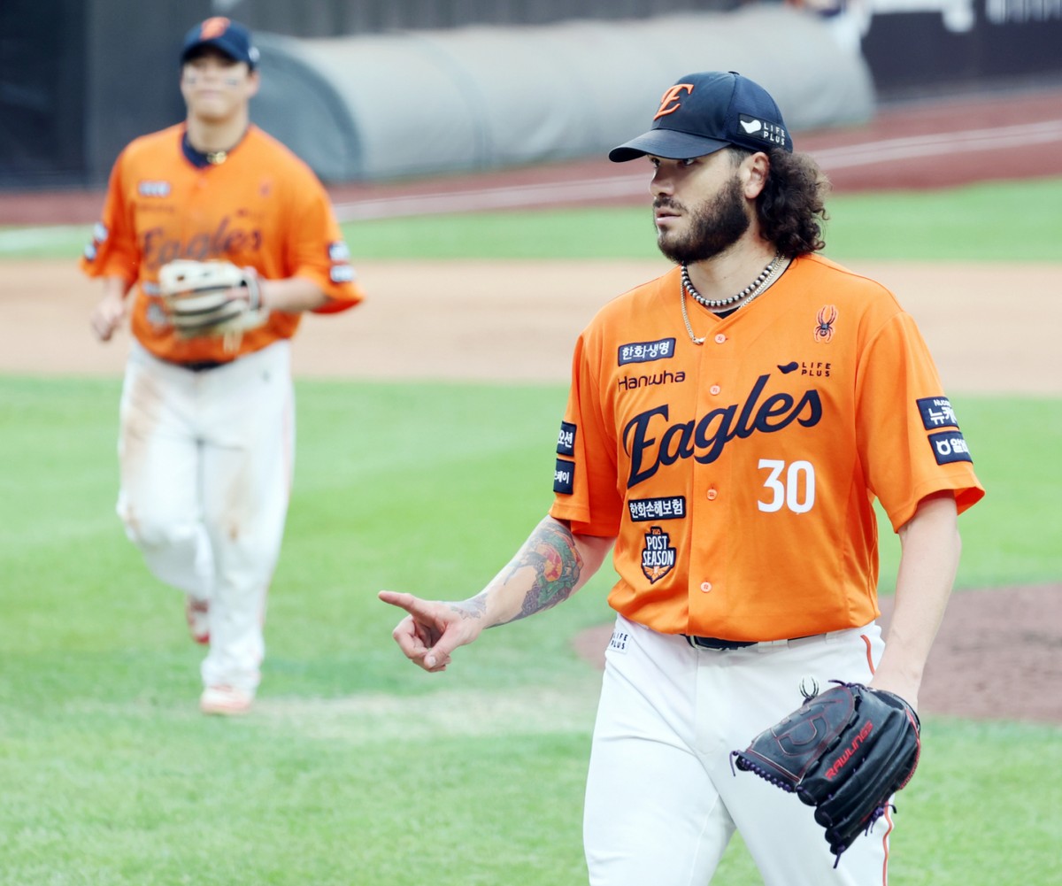 폰세는 이날 6이닝 7피안타 1볼넷 6실점(5자책)을 기록하며 악몽 같은 PS 데뷔전을 치렀다. 이미 105구를 던진 폰세는 7회까지 던지려 했으나 코치진의 만류에 마운드를 내려왔다.