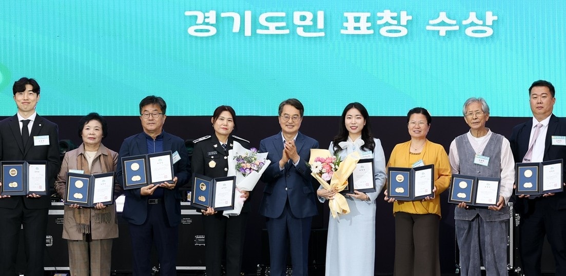 경기도는 도민의 날을 기념해 도 발전에 기여한 각 분야 도민 8명에게 '경기도민 표창'을 수여했다. 법질서와 농어촌 발전, 사회복지, 지역경제, 탄소중립, 문화예술, 체육진흥, 통일안보 분야다.