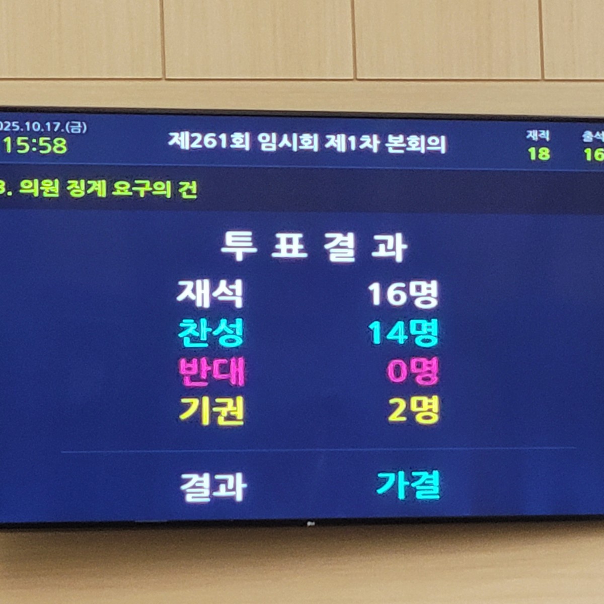 시민사회단체 관계자는 "의회가 자체적으로 윤리 판단을 내린 것은 상징적 의미가 크다"며 "지방의회의 책임성 회복으로 이어지길 기대한다"고 평가했다.