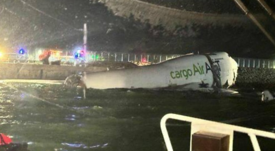 홍콩 국제공항에서 화물기가 착륙 도중 활주로를 벗어나 공항 차량과 충돌한 후 바다로 추락했다.