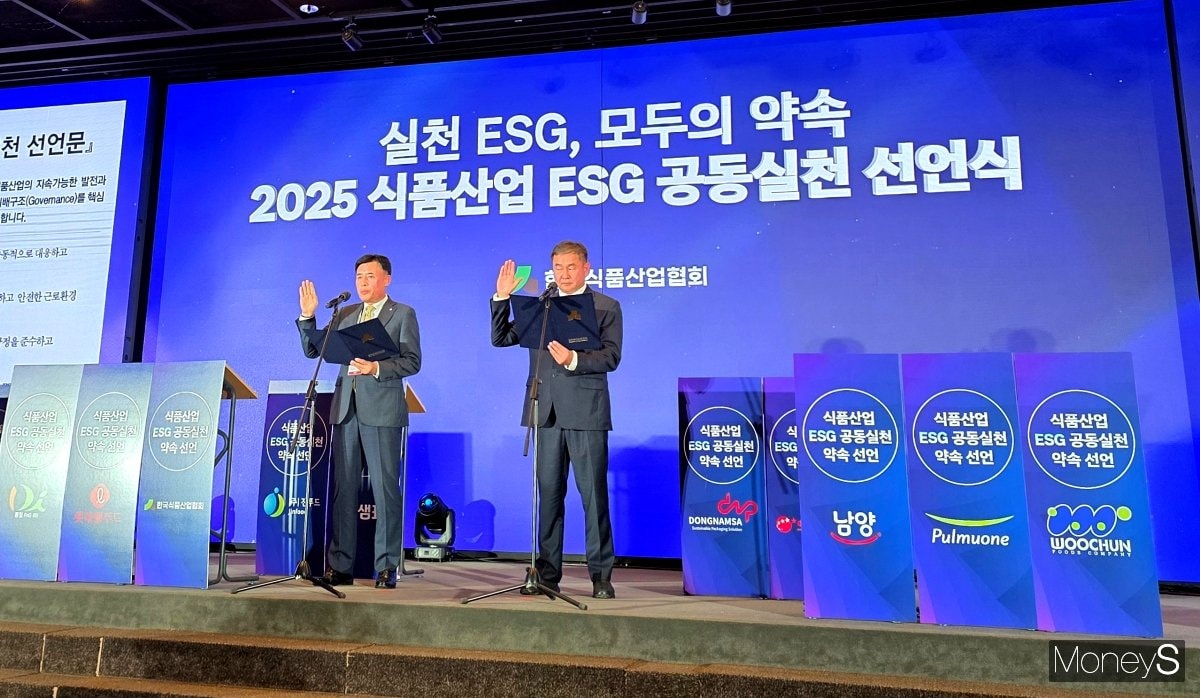 한국식품산업협회는 20일 오후 서울 영등포구 중소기업중앙회 KBIZ홀에서 '2025 식품산업 ESG 공동실천 선언식 및 경영포럼'을 개최했다. 이날 행사에는 CJ제일제당, 오뚜기, 롯데웰푸드, 오리온, 풀무원, 남양유업 등 주요 식품기업과 협력사, 정부 관계자들이 모여 ESG 경영 확산을 위한 공동 실천 의지를 다졌다.
