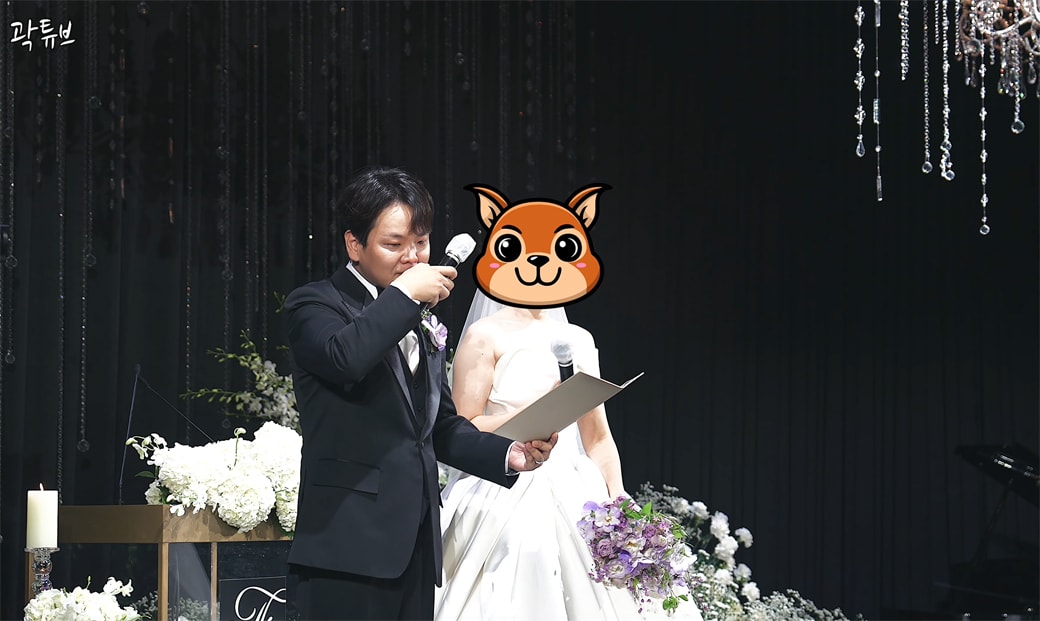 이후 신랑 신부는 혼인 서약 내용을 낭독했다. 하지만 혼인 서약 중 곽튜브가 "서로를 먼저 사랑하고 선택해 함께 인생을 걸어가기로 마음을 모았습니다. 남편은 아내가 언제나 존중받고 사랑받는 사람으로 살아갈 수 있도록 평생 함께하고"라는 멘트를 읽는 순간 울컥하며 눈물을 흘렸다.