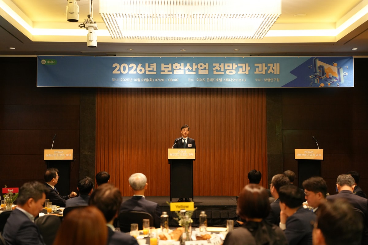 21일 보험연구원은 '2026년 보험산업 전망과 과제' 세미나를 개최했다. 이번 세미나에서는 황인창 보험연구원 금융시장분석실 실장이 '2026년 보험산업 전망'을, 노건엽 금융제도연구실 실장은 '2026년 보험산업 과제'를 발표했다.