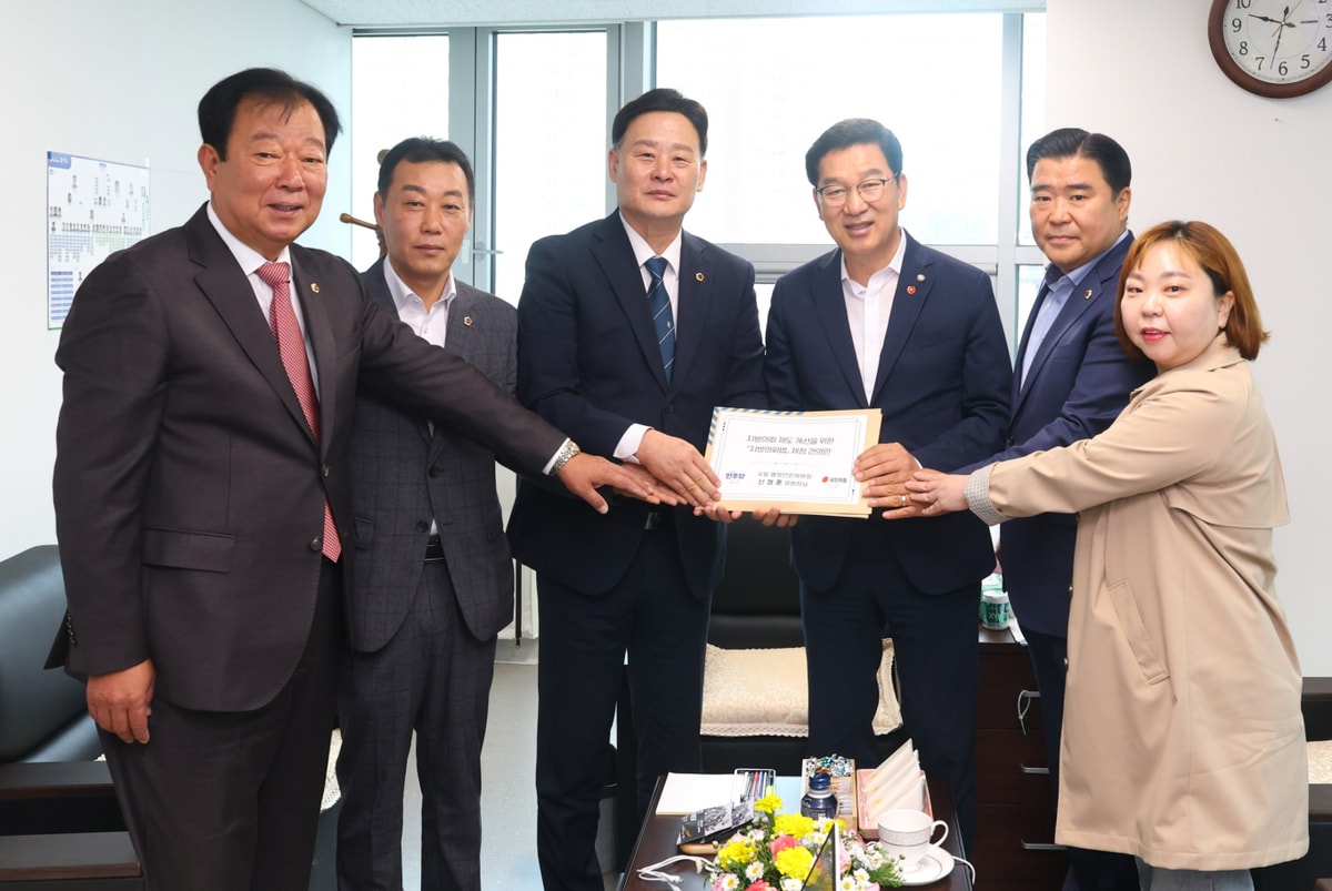 경기도의회 국민의힘(대표의원 백현종, 구리1)과 더불어민주당(대표의원 최종현, 수원7)은 21일 경기도 국정감사 차 경기도청을 방문한 국회 행정안전위원회 신정훈 위원장을 만나 '지방의회 제도개선을 위한 '지방의회법' 제정 건의안'을 제출했다.