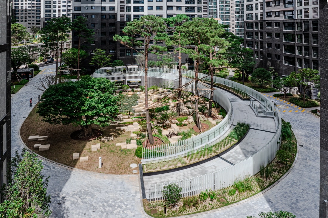 본상을 받은 래미안 포레스티지는 인근 자연유산 '금샘'과 금정산 '금정 8경'에서 모티브를 얻은 시설물과 테마정원을 조성했다. 비가 오면 생태연못으로 변하는 레인가든을 도입해 계절과 날씨에 따라 변화하는 풍경을 연출했다.