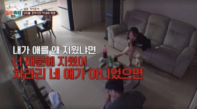아내는 싸움이 격해지자 "내가 애를 왜 지웠나. 너 때문이다. 네가 아니라 차라리 범죄자의 아이였으면 낳았을 거다"라고 독설을 해 모두를 경악하게 했다.