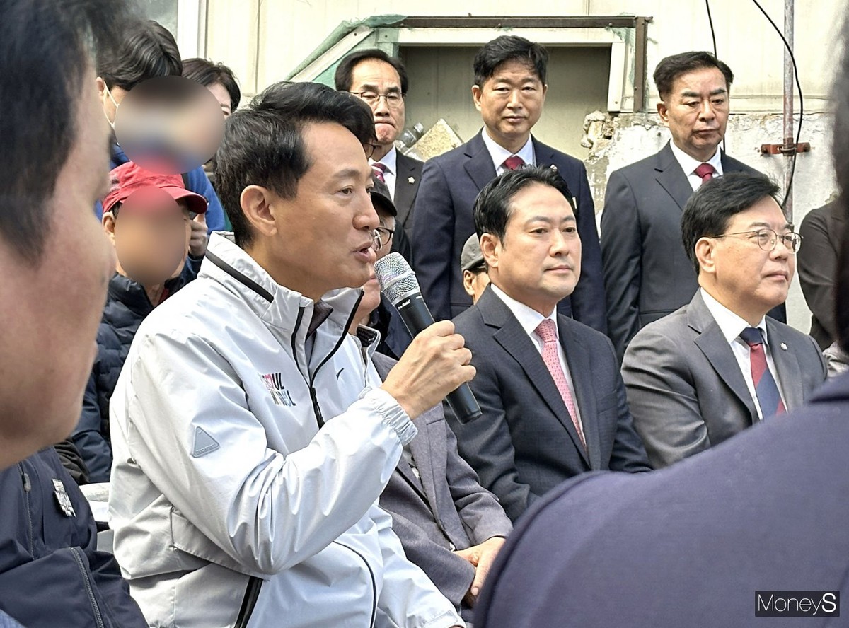 오 시장은 24일 오전 서울 노원구 상계5재정비촉진구역에서 국민의힘-서울시 '부동산 대책 현장 회의'를 열고 정부의 10·15 부동산 대책을 정면으로 비판했다.