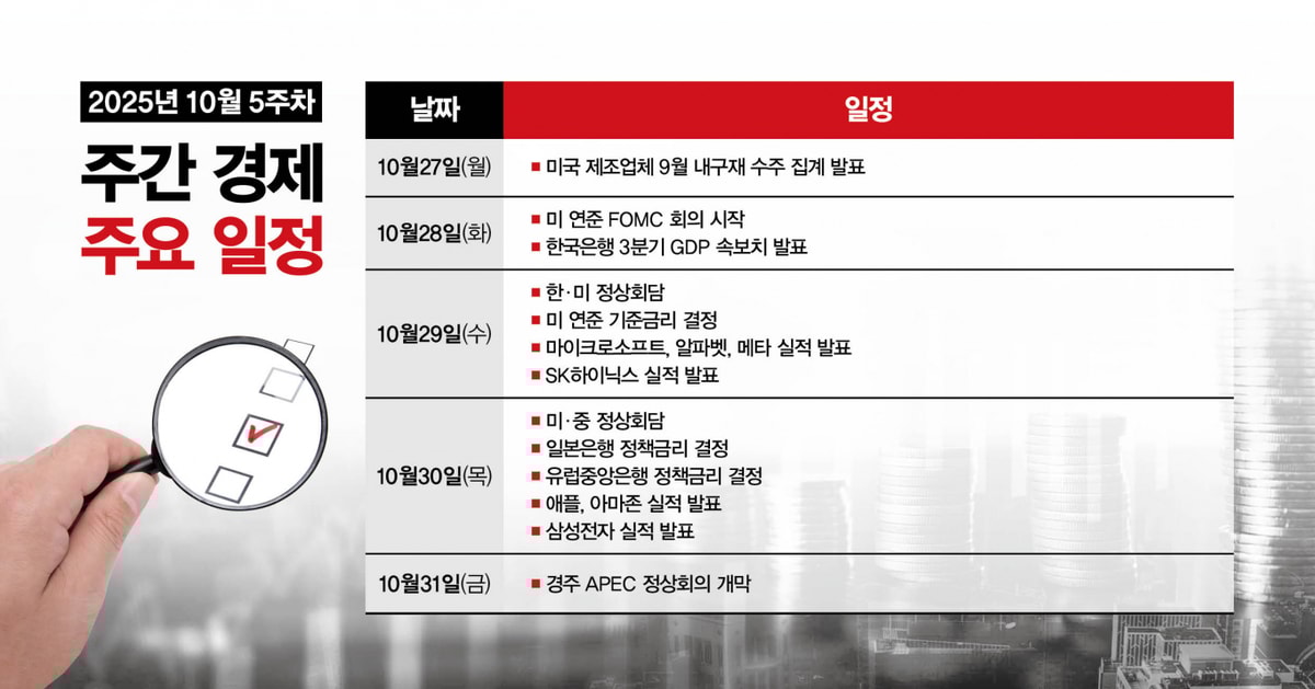 10월 다섯째주는 미국 FOMC회의와 한미 정상회담 등 굵직한 일정이 기다리고 있다.