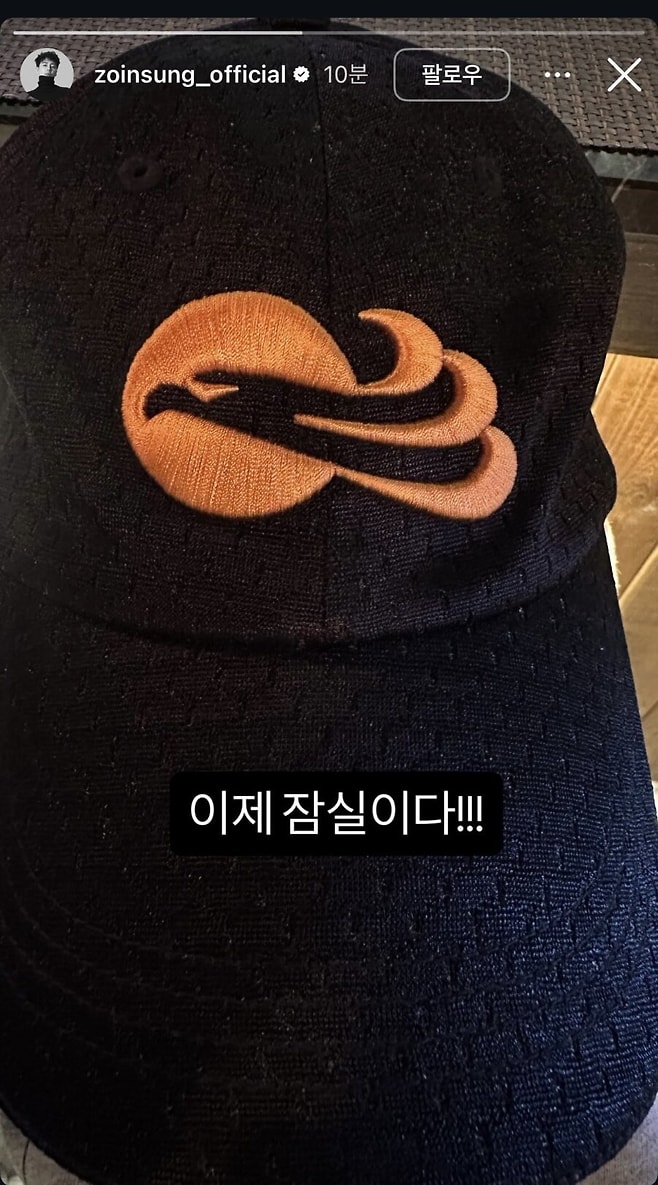 조인성은 지난 24일 자신의 사회관계망서비스(SNS)에 한화 이글스의 모자 사진을 올리며 "이제 잠실이다!!!"라는 글을 남겼다.