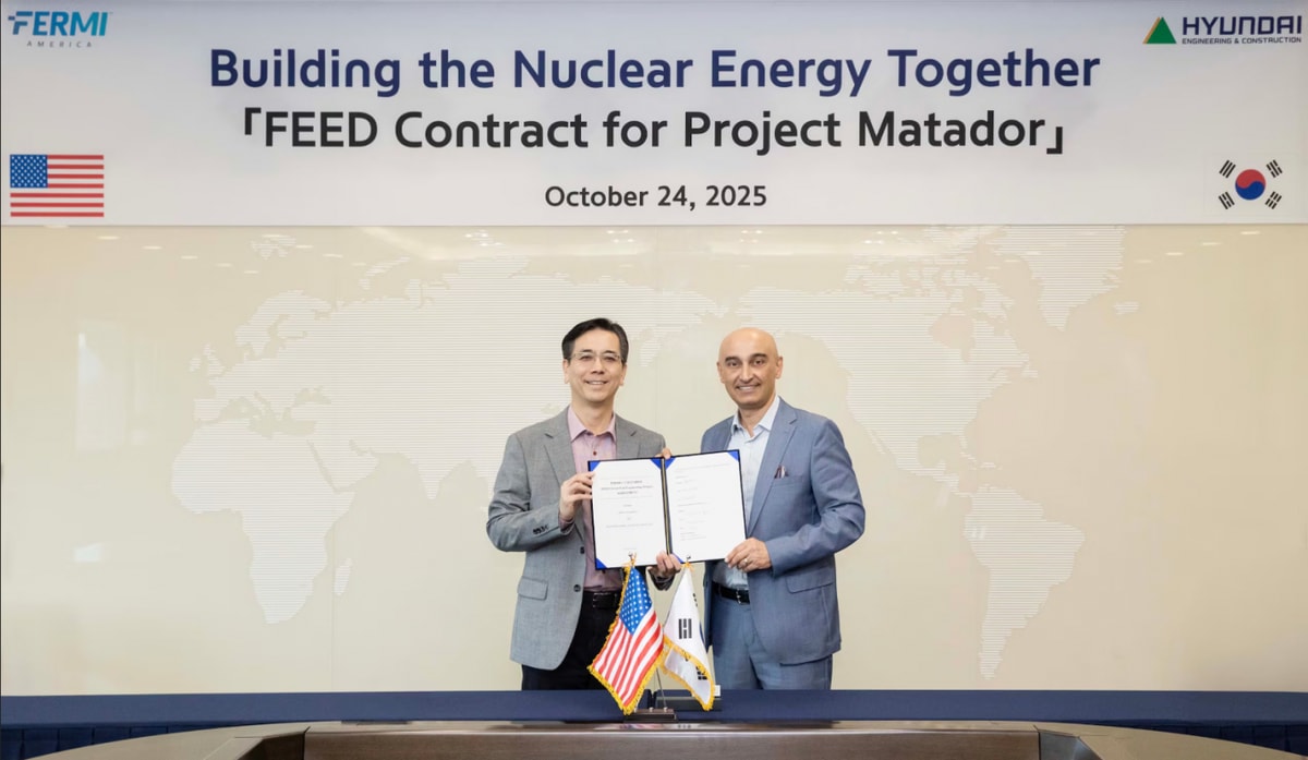 앞서 현대건설은 전날 미국 페르미 아메리카와 '복합 에너지 및 인공지능(AI) 캠퍼스' 내 대형원전 4기 건설에 대한 기본설계(FEED) 용역 계약을 맺었다고 밝혔다.
