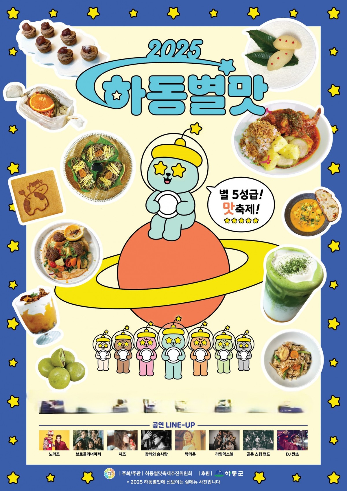 하동별맛 식사존에서는 섬진강 재첩국, 하동 농민들의 전통 음식인 '맑은 닭국(타작국)'을 비롯해 참숭어 솔잎파피요트, 하동제철 깜빠뉴, 재첩 루메스카다 등 지역 식재료를 활용한 특별 메뉴가 준비된다. 또한 셰프들이 참여하는 '스타먹스 오픈주방' 푸드쇼와 하동의 차 문화를 소개하는 다도회도 펼쳐진다.
