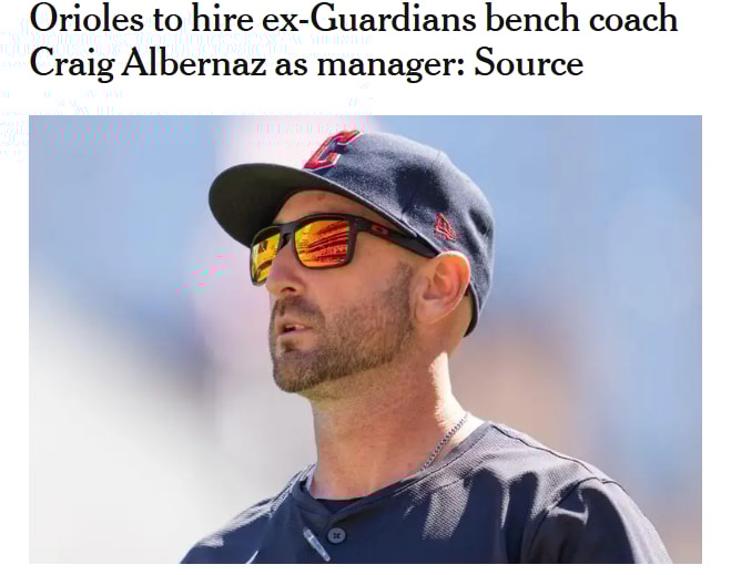 볼티모어 오리올스가 크레이그 앨버내즈 클리블랜드 가디언스 부감독을 새 사령탑으로 낙점했다.
