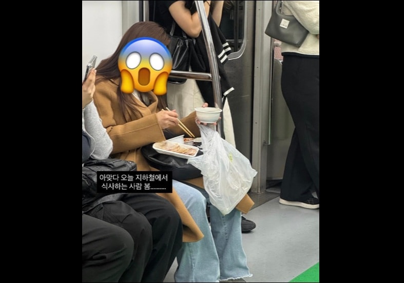 서울 지하철 2호선에서 한 여성이 좌석에 앉아 보쌈과 국, 김치 등을 꺼내 식사하는 모습이 사회관계망서비스(SNS)를 통해 확산되며 논란이 일고 있다.