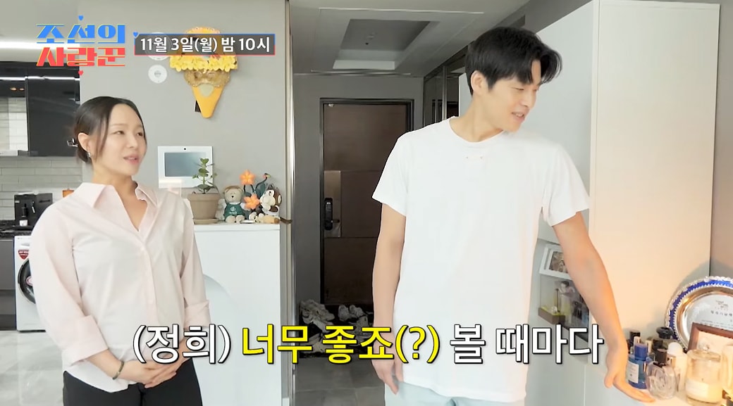 이날 방송에서는 두 사람의 신혼집도 공개됐다. 임정희는 가수 생활하는 동안 받은 트로피를 자랑했고 남편 역시 피트니스 부문 1등 트로피를 인증하며 탄탄한 복근을 드러냈다. 이에 임정희는 "볼 때마다 너무 좋다"며 뿌듯해했다.