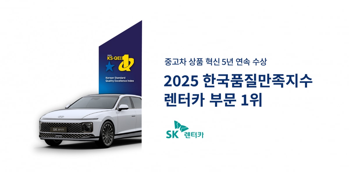 SK렌터카가 '2025 한국품질만족지수(KS-QEI)'에서 렌터카 부문 1위에 선정됐다고 28일 밝혔다. 이번 수상으로 SK렌터카는 통산 10회, 2021년부터 5년 연속 1위를 이어가며 렌터카 업계의 브랜드 경쟁력을 입증했다.