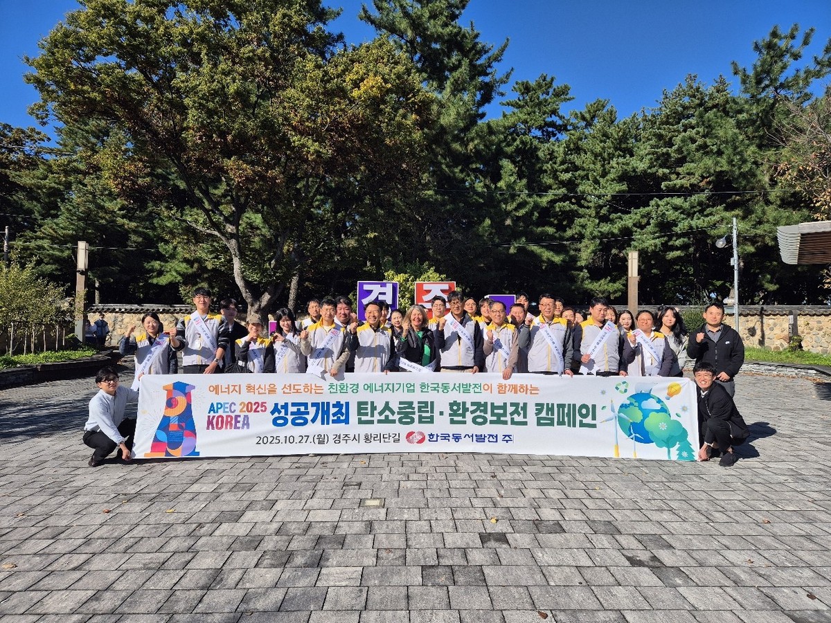 한국동서발전이 지난 27일 경주시 황리단길 일대에서 '아시아태평양경제협력체(APEC) 정상회의'의 성공 개최를 응원하고 탄소중립 문화 확산을 위한 '탄소중립·환경보전 캠페인'을 실시했다고 28일 밝혔다.