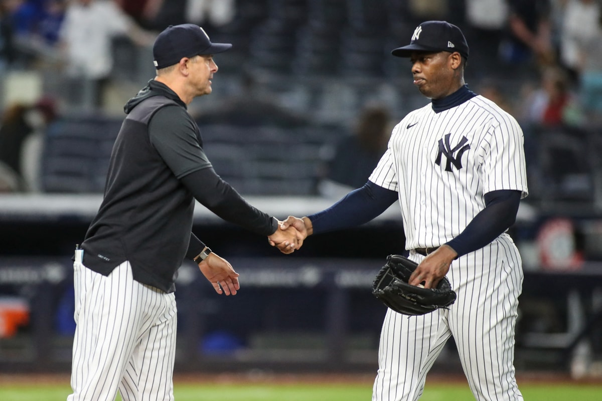 리그 최고 마무리로 자리매김한 채프먼은 2015년 양키스로 트레이드되며 처음 줄무늬 유니폼을 입었다. 2016시즌 도중 시카고 컵스로 트레이드됐다가 자유계약선수(FA)로 다시 양키스로 돌아왔다. 이후 2022시즌까지 활약하며 팀의 뒷문을 책임졌다.
