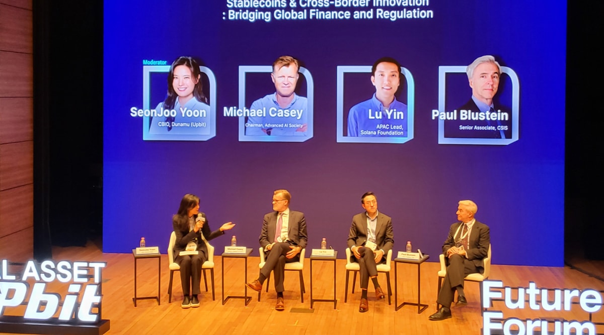 기조 연설 이후 이어진 패널토론에서는 스테이블코인 지지자와 달러 패권 지지자가 맞붙었다. 토론은 윤선주 두나무 CBIO가 이끌었다. 패널로는 폴 블루스타인 미국 전략국제문제 연구소 CSIS 연구원, 루 인 솔라나 재단 APAC 사업개발 총괄, 마이클 케이시 수석 고문이 참가했다. 이들은 스테이블코인를 다방면으로 접근했다.