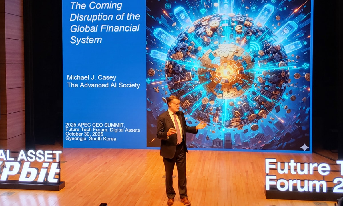 30일 경북 경주에서 '아시아태평양경제협력체(APEC) 최고경영자(CEO) 서밋 부대행사인 '퓨처테크 포럼: 디지털자산'이 열렸다. 이날 행사는 업비트 운영사인 두나무가 주최했다. 오경석 두나무 대표는 이날 오프닝 연사로 올라 "디지털 자산은 기술과 금융, 사람과 경제를 연결하는 다리"라고 했다. 행사는 디지털자산·금융 등 전문가 패널 토론으로 구성됐다. 각 업계 전문가가 모여 AI·스테이블코인·금융 등을 다각도로 조명했다.