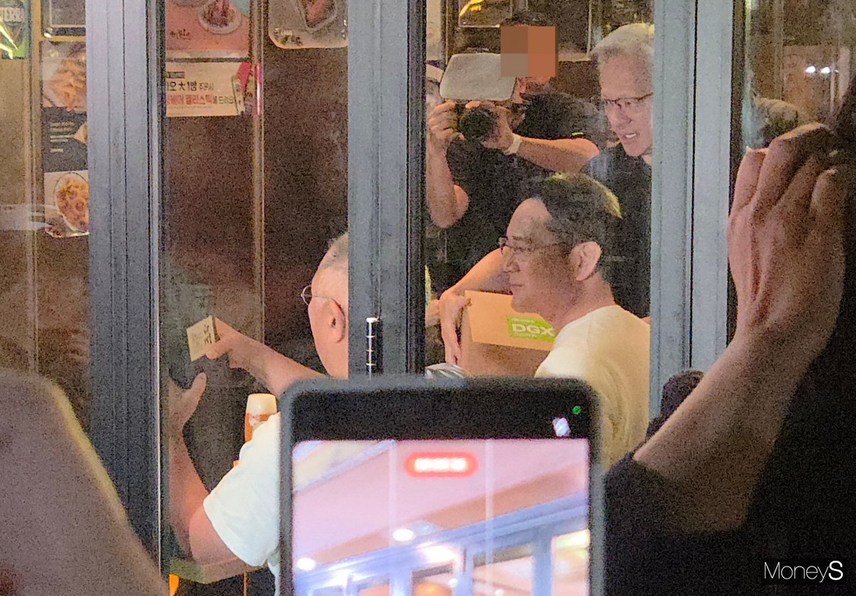 이재용 삼성전자 회장이 젠슨 황 엔비디아 CEO와의 '치맥 회동' 자리에서 만족감을 드러냈다.
