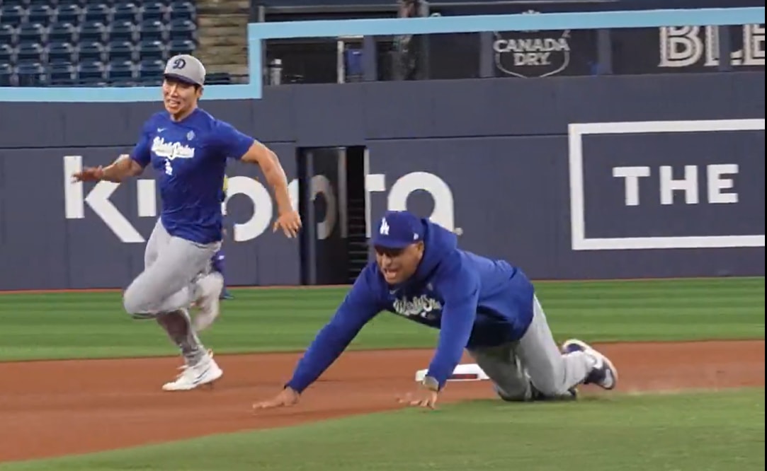 다저스는 31일(한국시각) 캐나다 토론토 로저스센터에서 열리는 월드시리즈(WS·7전4승제) 6차전 대비 훈련을 진행했다. 시리즈 전적 2승 3패로 벼랑 끝에 몰린 다저스는 6차전 패배 시 토론토에 우승을 내주게 된다. 무거운 분위기가 예상됐던 훈련장은 웃음이 가득했다. 로버츠 감독이 제안한 특별한 이벤트 덕분이다.