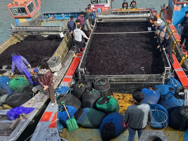 31일 진도군에 따르면 전날 고군면 원포위판장과 회동위판장에서 물김의 첫 거래(위판)가 이뤄졌다.