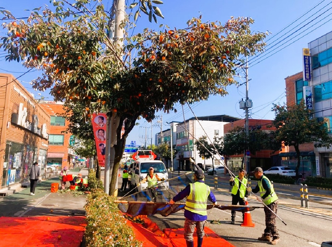 상주시가 가을 수확기를 맞아 관내 도로변 가로수로 식재된 감나무의 감 수확 작업을 본격적으로 시작했다고 3일 밝혔다.