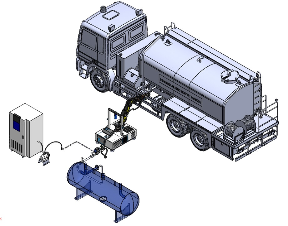 케이엔알시스템 등 산학연 공동연구팀은 이러한 고위험 수작업을 대체하는 아이디어기획으로 이 회사가 보유한 다(多)자유도 유압로봇팔을 우선 적용했다. 또한 AI 기반의 3D 비전시스템을 통해 배관의 위치를 인식하고, 로봇팔 그리퍼(Gripper)를 이용해 배관을 체결하고 암모니아 잔류가스까지 회수할 수 있도록 했다.