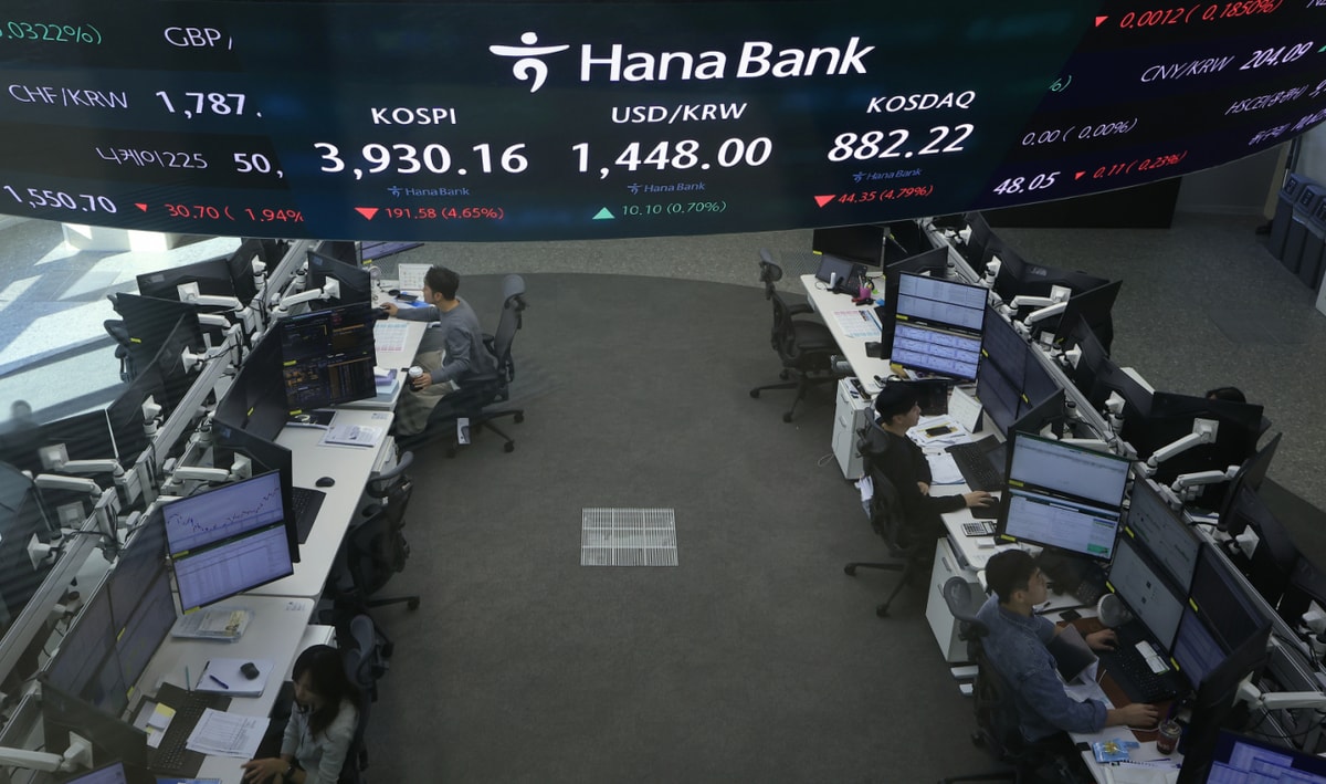 환율도 급등 중이다. 같은 시각 서울외환시장에서 원/달러 환율은 전 거래일 대비 7.5원 오른 1448.10원을 나타낸다.