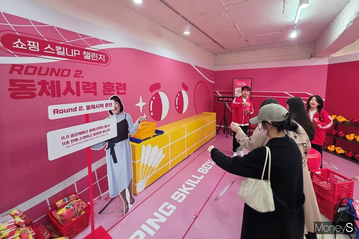 팝업스토어는 1층의 챌린지 구역과 2층의 전시·게임 구역으로 나뉘었다. 2층에 마련된 세가지 '트레이닝' 게임을 통과해 스탬프를 받아야만 1층의 하이라이트인 '11초 챌린지'에 참여할 수 있는 구조다. 온라인에서 진행한 '11초 장바구니 챌린지' 기록을 제시하면 현장 이벤트 참여 시 우대 혜택을 추가해 온라인과 오프라인을 잇는(O2O) 시너지도 노렸다.