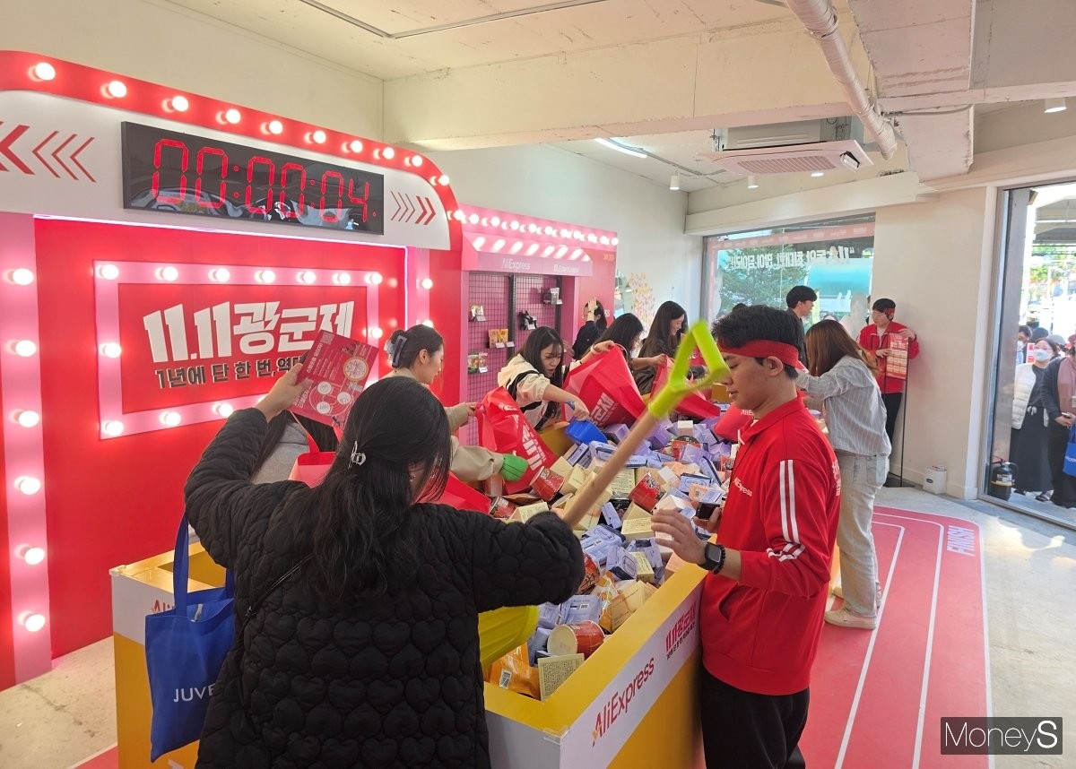 7일 오후 1시, 서울 성수역 3번 출구 인근에 문을 연 알리익스프레스의 '11초 장바구니 챌린지' 팝업스토어는 중국 최대 쇼핑 축제 '광군제'의 열기를 서울 한복판으로 옮겨온 듯했다. 단순한 상품 전시가 아닌 '쇼핑왕 트레이닝 센터'라는 콘셉트 아래, 쇼핑 마니아를 위한 거대한 놀이터가 펼쳐져 있었다.