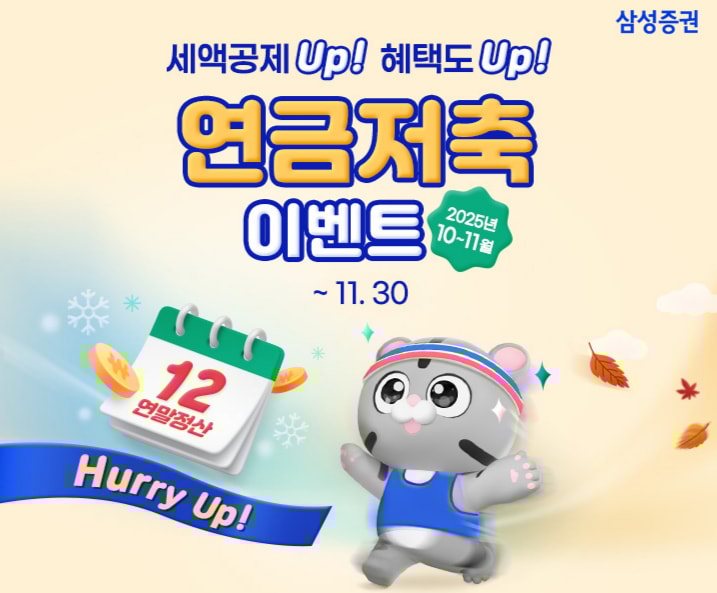 삼성증권이 '세액공제 Up 혜택도 Up Hurry Up! 연금저축 이벤트'를 오는 30일까지 진행한다.