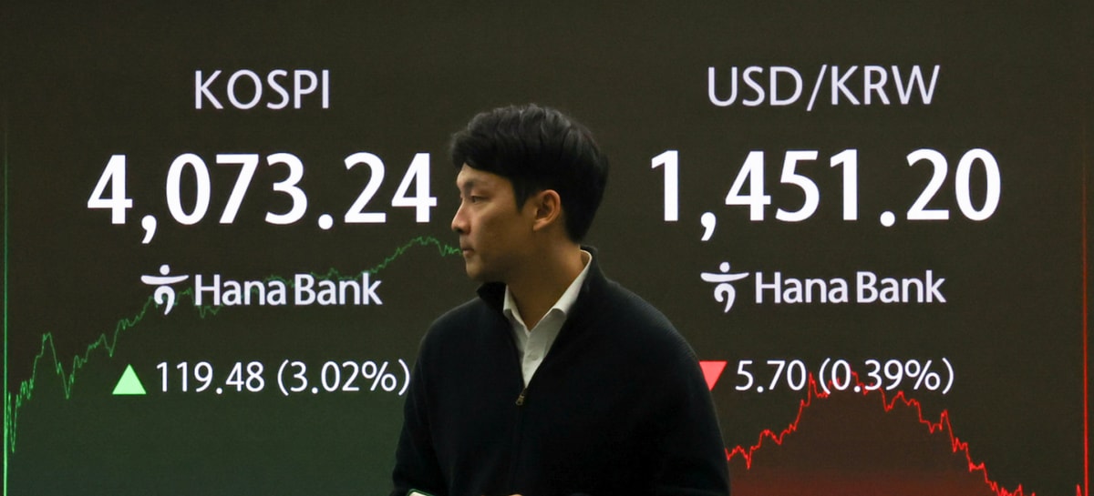 코스피 지수가 대내외 호재로 3% 넘게 뛰어 4070선에서 마감했다. 종목별로는 반도체주와 방산주 등이 고르게 올랐다.