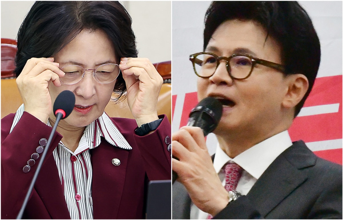법무부 장관을 지낸 추미애 더불어민주당 의원과 한동훈 전 국민의힘 대표가 검찰의 항소 포기를 놓고 가시 돋친 공방을 주고 받았다.