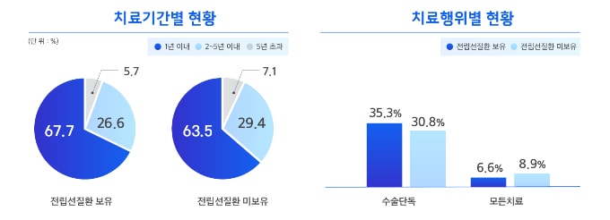 삼성화재 분석결과 전립선암 환자의 22.5%가 전립선염, 전립선비대 등 전립선질환을 사전에 겪고 있었다. 전립선질환 환자는 관련 질환 미보유자 대비 암 진단 후 1년 내 치료종결 비중이 4.2% 높았다. 수술단독 치료 비중 역시 4.5% 많았다. 조기 발견이 치료 경과에 긍정적인 영향을 끼친 것으로 풀이된다.