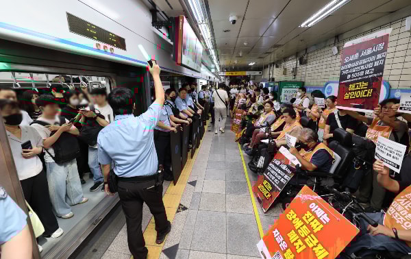 앞서 지난 10일 오전 8시쯤에도 전장연이 지하철 4호선 혜화역에서 출근길 탑승 시위를 벌여 하행선 열차 운행이 약 12분 지연된 바 있다. 지난 4일에도 오전 8시부터 서울역 플랫폼에서 탑승 시위를 벌여 오전 10시를 기준으로 상행 7편, 하행 8편을 무정차 통과 조치한 바 있다.
