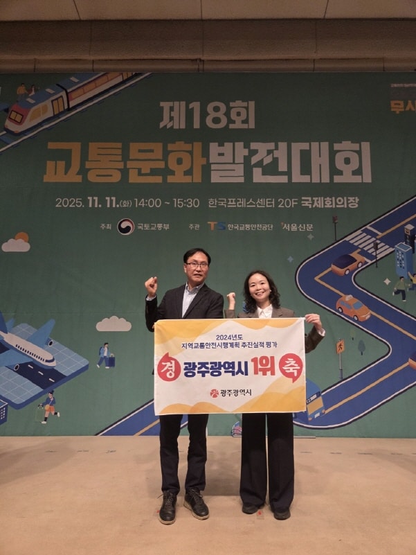 광주광역시는 지난 11일 서울 한국프레스센터 국제회의장에서 열린 제18회 교통문화발전대회에서 국토교통부 주관 '2024년도 지역교통안전시행계획 추진실적 평가' 특·광역시 부문 1위를 차지해 국토교통부 장관상을 수상했다.