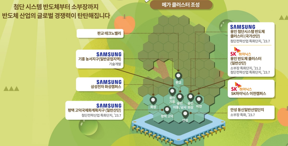 이는 경기 남부권에 산재된 산업단지를 묶어 대규모 생산, 연구, 인재 양성, 소부장(소재·부품·장비) 기업을 아우르는 반도체 생태계를 구축하는 대규모 프로젝트다.