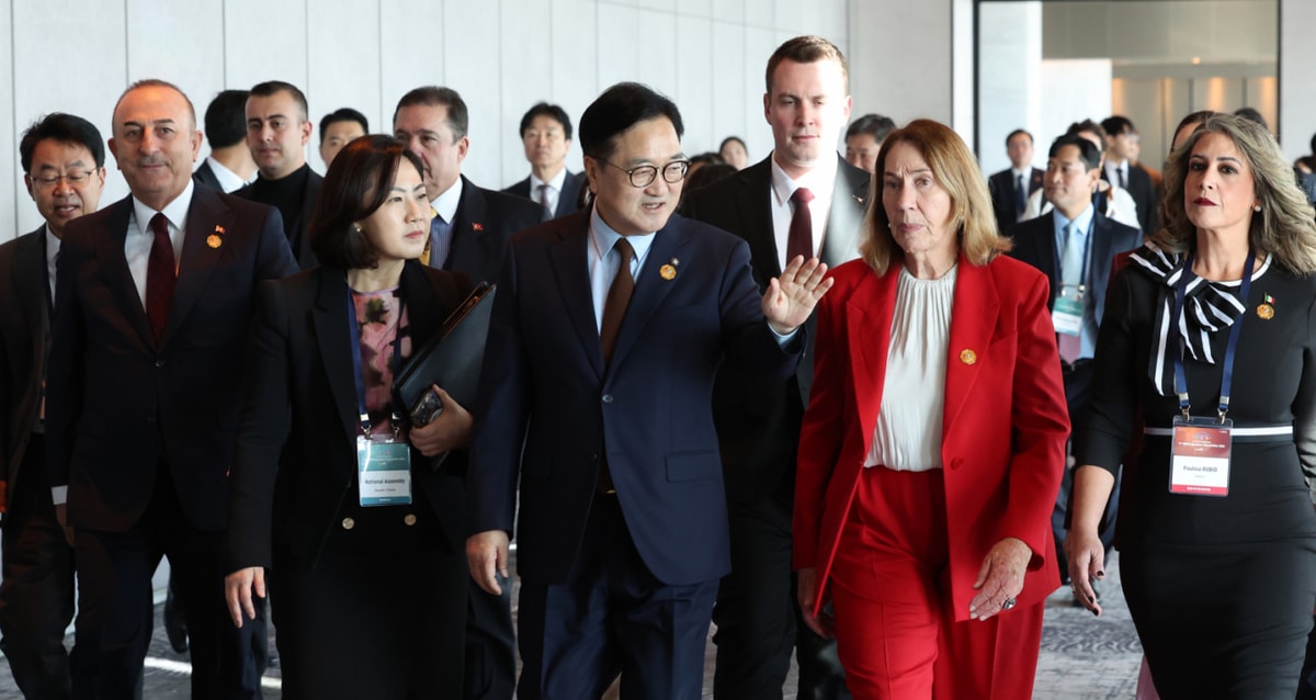 우원식 국회의장이 수 라인즈 호주 상원의장과 12일 '제11차 믹타 국회의장회의'서 만나 양자회담을 진행했다. 서울 광진구 그랜드&워커힐 호텔에서 진행된 믹타 회의 첫 번째 세션이 끝나고 회담은 이뤄졌다.