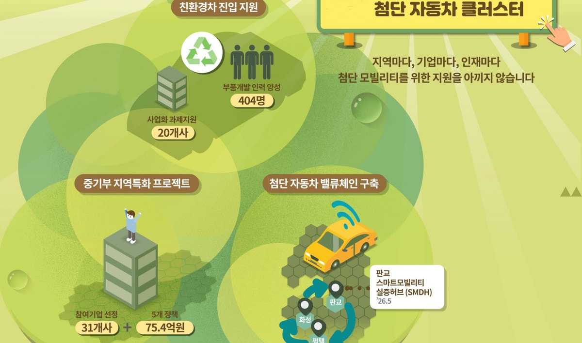 경기도가 화성, 평택, 성남 판교를 거점으로 하는 첨단자동차 클러스터 조성을 추진한다고 13일 밝혔다. 이는 미래 모빌리티 산업 혁신과 글로벌 경쟁력 강화를 목표로 하며, 새로운 미래 성장 동력 확보를 위한 행보다.
