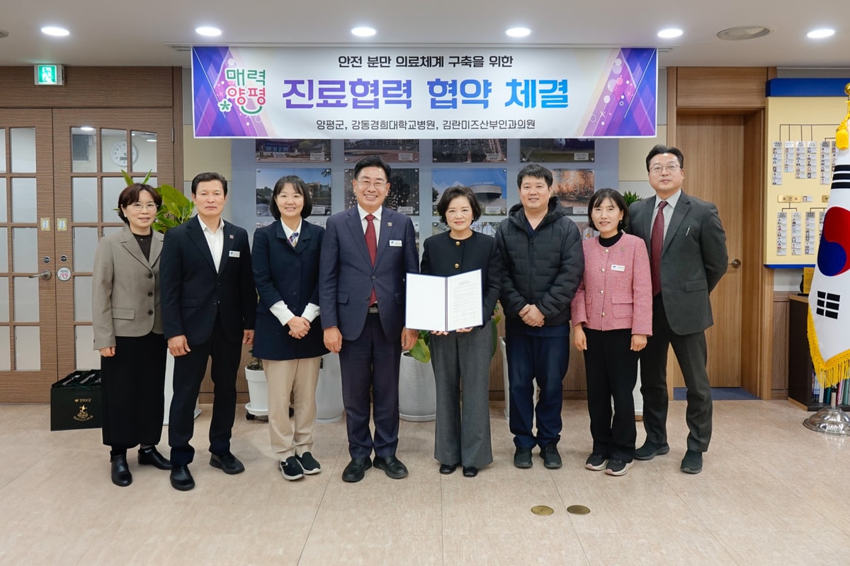 양평군은 지난 12일 강동경희대학교병원 및 양평김란미즈산부인과와 안전한 분만 의료체계 구축을 위한 업무협약을 체결했다고 13일 밝혔다.