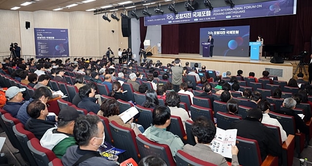 포항시가 지난 13일 포은흥해도서관에서 '2025 포항지진 국제포럼'을 열고 지진 발생 8년을 맞아 과학적 원인 규명과 법적 쟁점, 시민 치유, 지역 공동체 회복 방안을 논의했다.