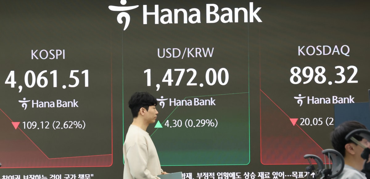 14일 한국거래소에 따르면 이날 오후 1시35분 코스피는 전 거래일 대비 127.12포인트(3.05%) 내린 4043.51에 거래된다. 이날 전 거래일 대비 2.61% 하락 출발한 코스피는 오후에도 하락세가 지속 중이다.