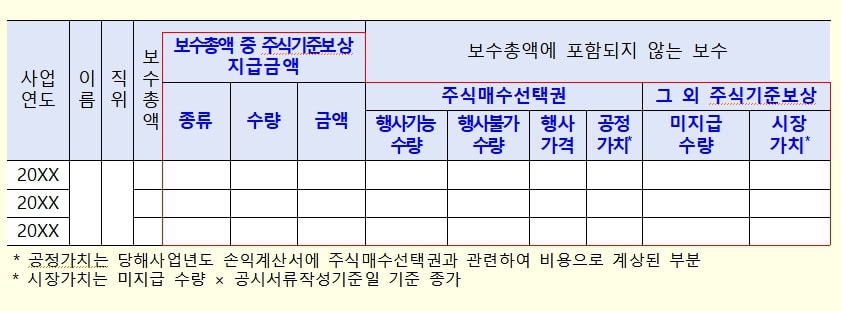 주식매수선택권외 주식기준보상의 경우도 주식매수선택권과 동일하게 임원 개인별 상세 부여 현황을 별도 공시하도록 개정할 계획이다.