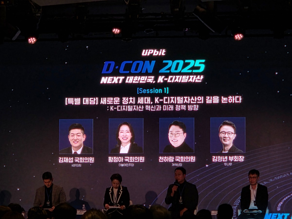19일 서울 여의도 페어몬트 앰배서더 호텔 그랜드볼룸에서 열린 업비트 디지털자산 정책 콘퍼런스 'D.CON 2025'에서 'NEXT 대한민국, K-디지털자산'을 주제로 여야 정치인과 업계 전문가들이 K-디지털자산의 미래와 정책 방향을 놓고 열띤 대담을 펼쳤다
