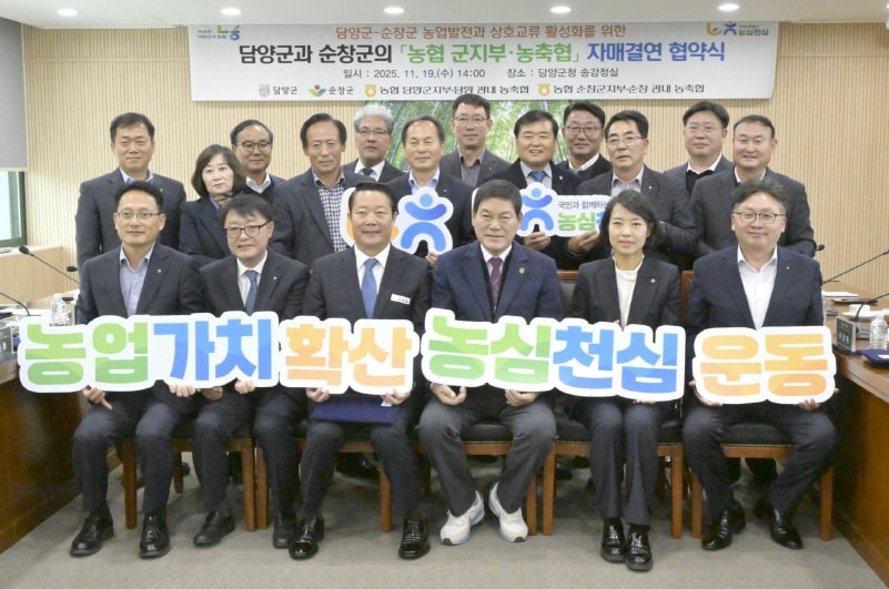 전북 순창군과 담양군의 지역 농·축협장이 한자리에 모여 상호 농업발전과 상생협력을 다짐하는 자매결연 협약을 맺어 눈길을 끌었다.