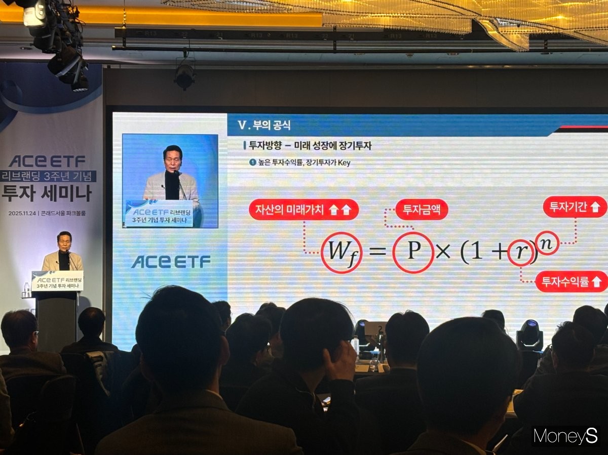24일 배재규 대표는 여의도 콘래드호텔에서 열린 'ACE ETF(상장지수펀드)' 리브랜딩 3주년 기념 투자 세미나에서 미래 성장성이 큰 테크 기업 선정이 중요하며, 투자 판단 시점은 '현재'가 아닌 '미래'에 있다고 강조했다.