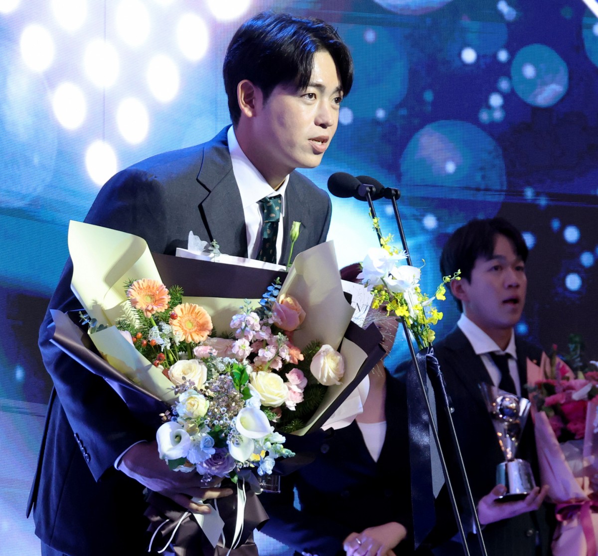 KIA타이거즈로 이적한 이태양이 당찬 수상소감을 전했다. 사진은 24일 서울 송파구 잠실 롯데호텔 월드에서 열린 2025 신한 SOL뱅크 KBO어워즈에서 퓨처스리그 평균자책점상과 승리상을 수상한 이태양. /사진=스타뉴스