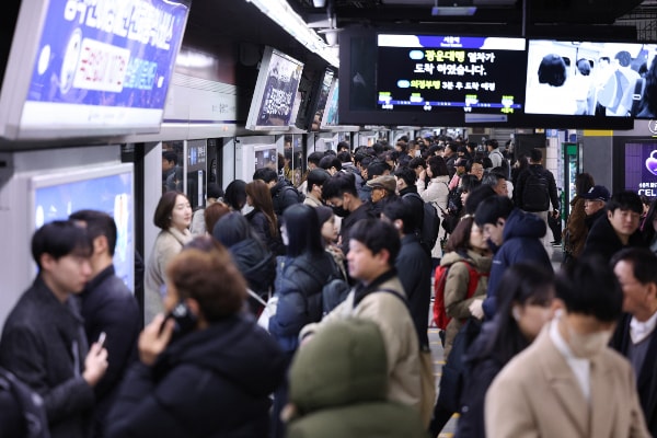 서울지하철 4호선 안산선 시흥차량기지 내에서 코레일 작업차가 궤도를 이탈했다. 사진은 기사의 이해를 돕기 위한 지난해 12월5일 오전 지하철 1호선 서울역이 출근길 이용객들로 붐비고 있는 모습. /사진=뉴스1