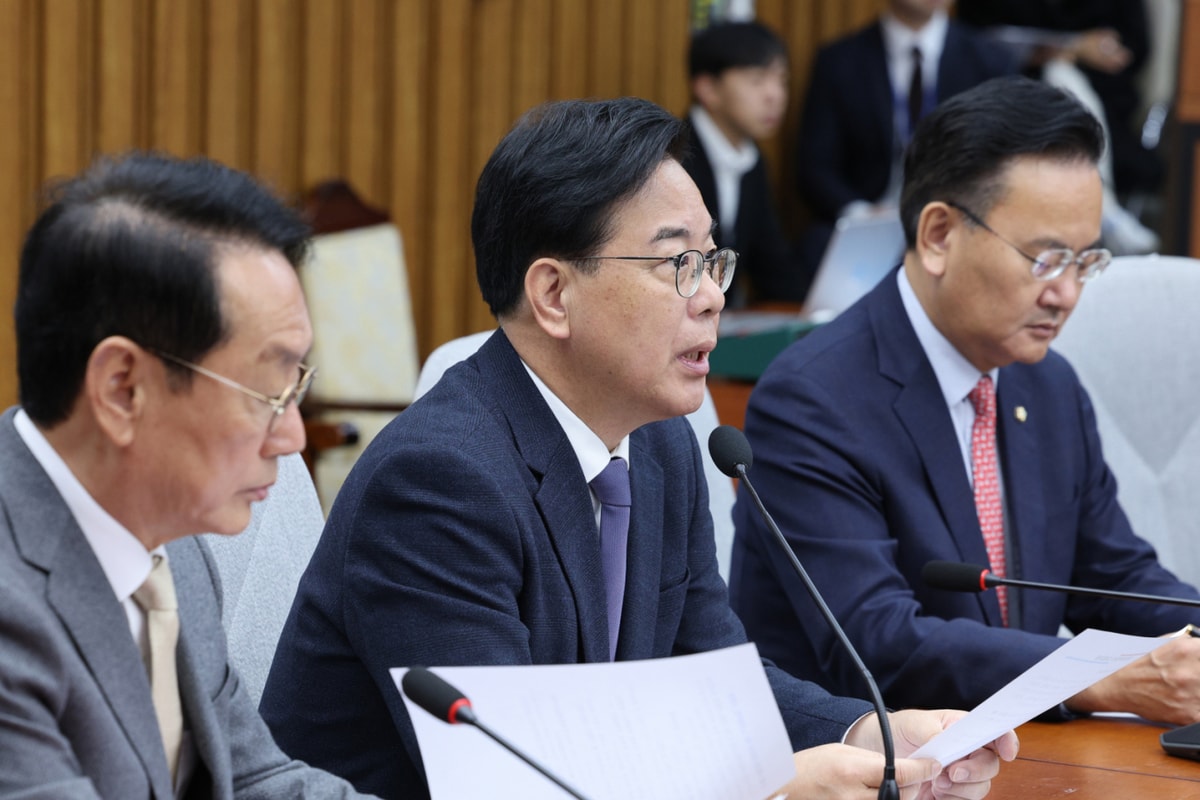 송언석 국민의힘 원내대표가 내년 시행 예정인 '노란봉투법'(노동조합법 2·3조 개정법) 전면 철회를 요구했다.